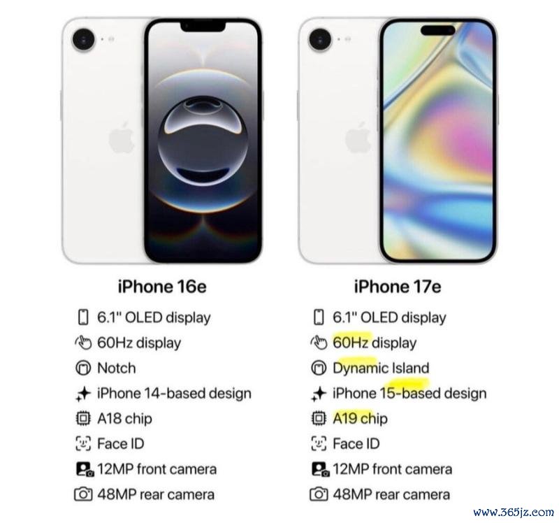 在外观设计上,iPhone 17e 将由前代的“刘海屏”转变为“灵动岛”设计。性能方面,iPhone 17e 预计将搭载与标准版 iPhone 17同款的 A19芯片;面板方面,苹果将采用 LTPS OLED 面板,而非高端机型上昂贵的 LTPO 面板。