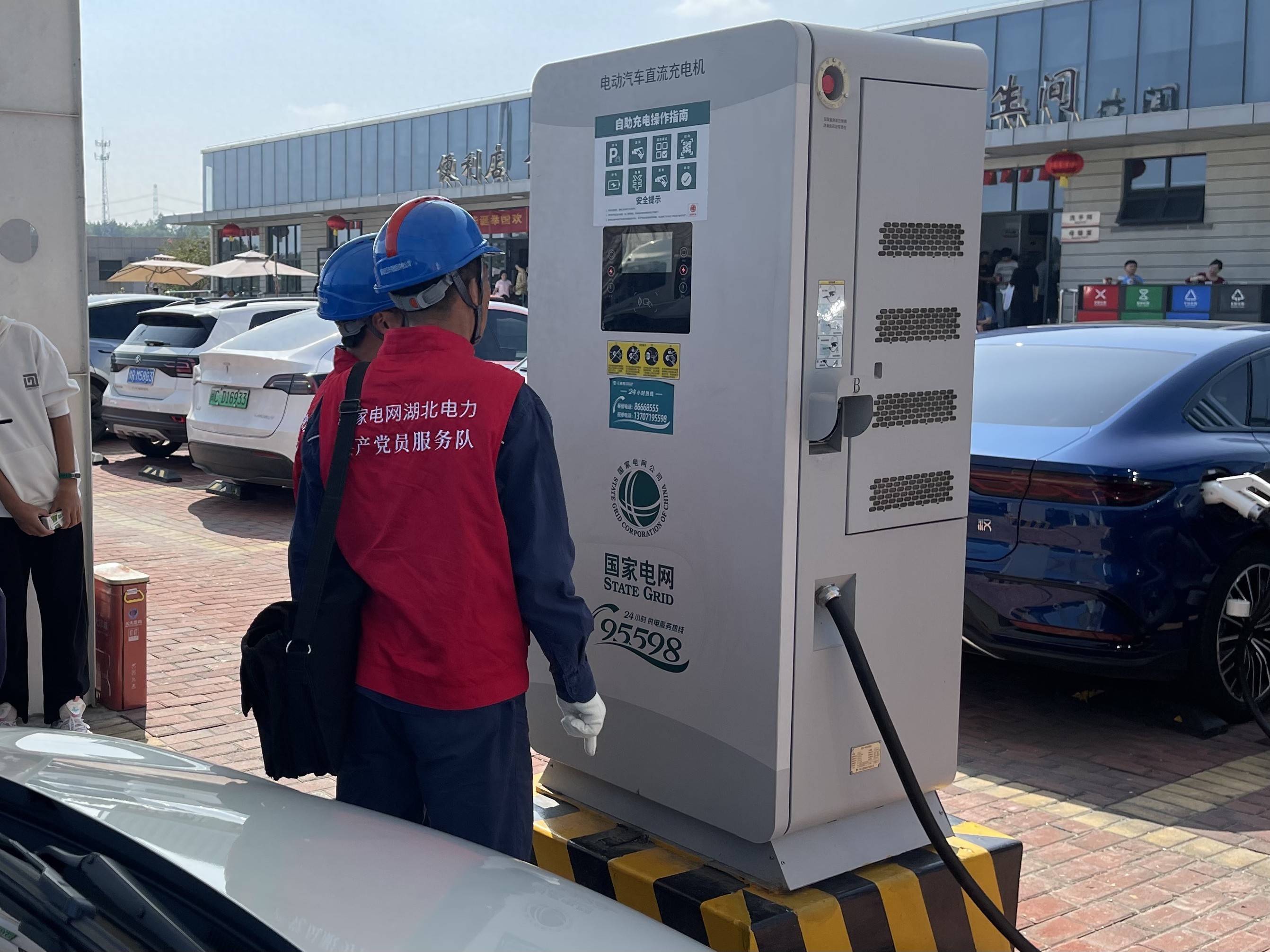 为解决“双节”期间新能源车主的“里程忧虑”,国网武汉供电公司每日安排运维人员对高速公路服务区充电站进行特巡,对每个充电桩的外壳以及内部原件进行检查,通过观察充电桩指示灯颜色、配电箱指示灯状态、充电枪是否破损变形,判断充电桩工作状态是否有异常,并对服务区新出现的故障充电桩进行抢修。